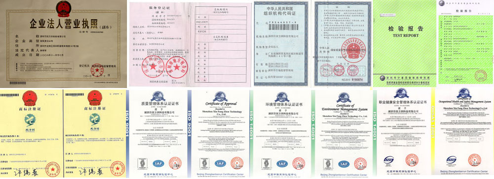 欣方圳營(yíng)業(yè)執(zhí)照、稅務(wù)登記證、組織機(jī)構(gòu)代碼證,欣方圳垃圾桶檢驗(yàn)報(bào)告、垃圾桶資質(zhì),“欣方圳”注冊(cè)商標(biāo),欣方圳ISO9001:2008、ISO14001:2004、OHSAS18001認(rèn)證證書(shū)
