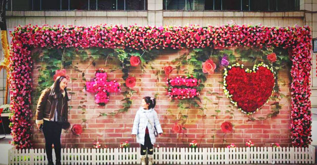 ? ? ? ? 金鷹奧萊城:一片浪漫甜蜜花語墻——2.11-2.14,南京金鷹奧萊城搭建甜蜜花語墻,吸引大批顧客前來合影,不僅有情侶,還有母女、朋友、同事等等;合影墻旁還準備了微信打印機,顧客可現(xiàn)場打印照片以作留念。