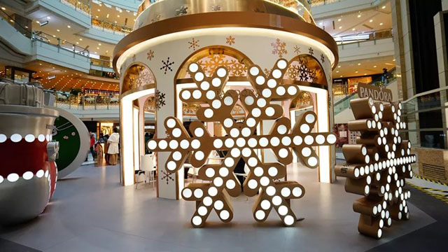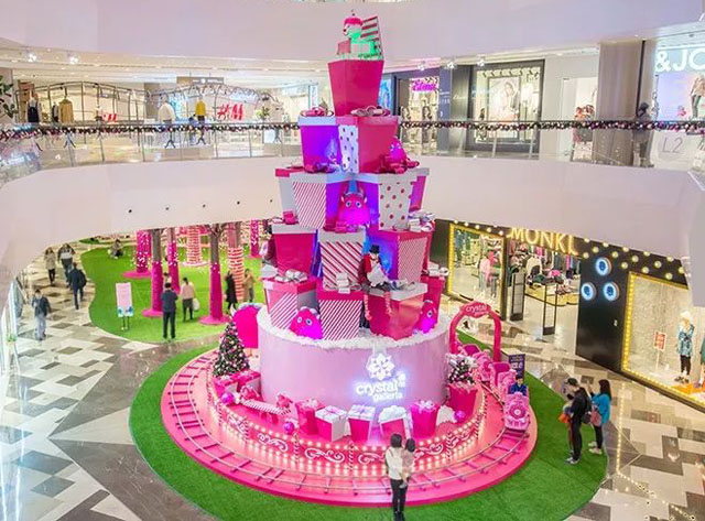? ? ? ? 圣誕節(jié)快到了,超人氣網(wǎng)絡(luò)游戲仙境傳說RO團(tuán)隊(duì)在恒隆廣場種下了一顆18米的圣誕樹,,整棵樹及周邊裝飾占地110平米,樹上掛滿了波利與雪花,樹下還有圣誕小屋,左右兩邊還有幾只巨大表情各異的波利。潘多拉品牌在港匯恒隆廣場中庭打造了一個圣誕樹屋,給商場帶來濃濃節(jié)日氣氛。樹屋被幾個巨大的雪花、圣誕襪、圣誕禮盒包裹著。