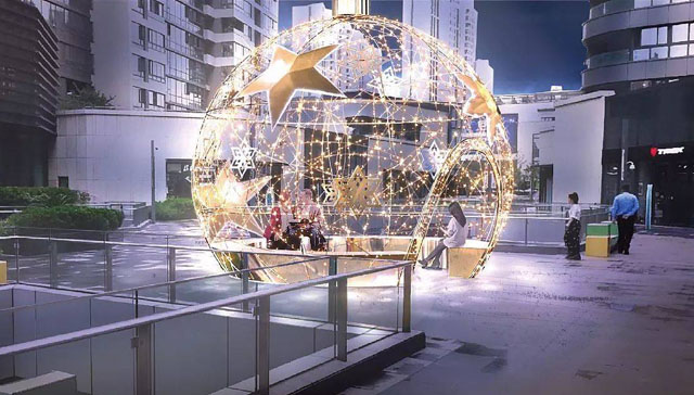 ? ? ? ?追尋圣誕老人和馴鹿而來的那個方向,浩渺星空,銀河萬里,伴著深淺星光和慢慢長夜,幸福如遠(yuǎn)處最亮的那顆星,溫暖灑落熠熠星光。夜幕降臨,璀璨的圣誕樹點(diǎn)亮靜安的夜空,充滿未來感的造型仿佛要起飛去到外太空。你可以親自點(diǎn)亮圣誕樹周圍的片片雪花,更妙的是你還可以走進(jìn)這棵華麗的圣誕樹,體驗(yàn)浪漫的浩瀚星光。
