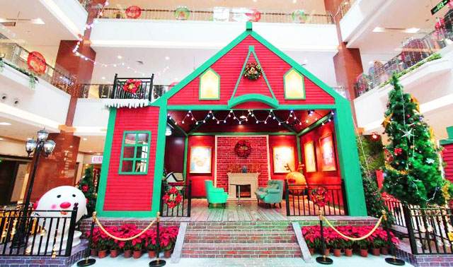 ? ? ? ?東百蔡塘廣場——東百蔡塘廣場今年的圣誕主題是紅魔房圣誕童話秀,整個主場都覆蓋上了靚麗的紅色,以金色鑲嵌,配色上依舊經典。精致小屋北歐紅魔房房內有家居陳設,藍綠色的沙發(fā)、壁爐、掛畫、彩燈等,大家可以在里面休息或拍照。別致的北歐紅魔房、憨萌的馴鹿精靈、可愛的麋鹿列車從歐洲冰雪世界穿越而來。