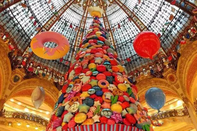 ? ? ?今年老佛爺?shù)氖フQ燈也早早點亮了,大家都知道,老佛爺每年一換的圣誕樹都是備受矚目的重頭戲——今年變成了由無數(shù)糖果、甜甜圈做成的圣誕樹。