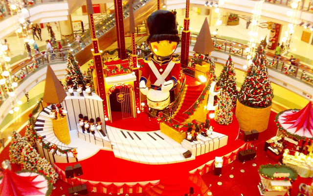 中庭裝飾設計著重于按照空間層次劃分為:1)中庭地景設計;2)中空吊飾設計;3)天地景觀。根據商場的具體側重點不同和中庭的硬件特點以及節(jié)令性不同,可以靈活選擇裝飾側重點。