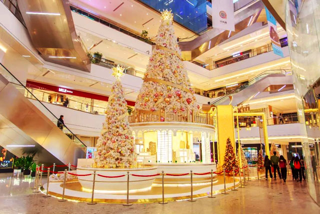 ? ? 美陳精致化——近年來,圣誕美陳不停追求夸張的造型,最必不可少的圣誕樹反而淪為點(diǎn)綴陪襯。華潤萬象天地反其道而行之,開啟圣誕樹“甄選模式”,歷經(jīng)數(shù)次打樣甄選,720個小時設(shè)計制作,將別人眼里最常規(guī)的物料,打造成最精致的美景。場內(nèi)3款圣誕樹,采用10余款不同花紋造型的圣誕彩球,定制金色刺繡圣誕綢緞裝飾,中庭一棵高達(dá)12米的雪白巨型圣誕樹,分外引人矚目,璀璨絢麗的燈光伴隨著圣誕音樂煥發(fā)奪目光彩。讓這個棵獨(dú)一無二的圣誕樹比浪漫更夢幻,比夢幻更浪漫。