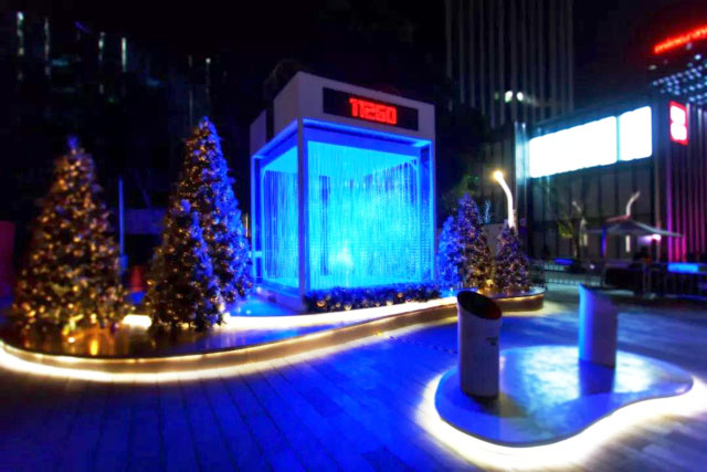 ? ? 美陳科技化——華潤萬象天地一直致力于通過引領(lǐng)性的藝術(shù)視角和高體驗的空間裝置,為消費(fèi)者打造最具靈感與創(chuàng)意的高科技藝術(shù)空間。專為本次美陳打造的2個大型高科技“Gift Box”互動裝置——“隨你百分百”和“心跳百分百”,運(yùn)用了骨骼捕捉、實(shí)時感應(yīng)、燈光動畫特效等多項技術(shù)由音樂視覺藝術(shù)家,設(shè)計師和程序設(shè)計共同完成。