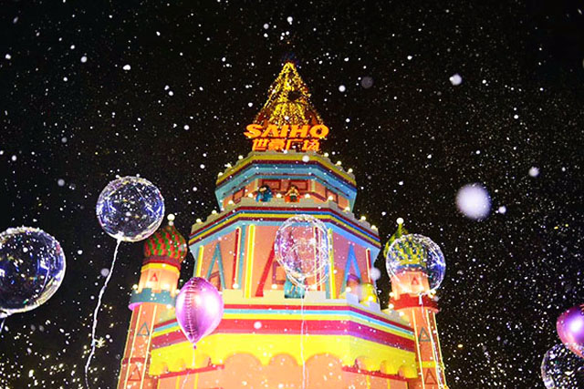 作為城南大源商圈“老”資格的購物中心,世豪廣場的圣誕美陳卻一點不顯old,而是和國際接軌,走異國風(fēng)style。