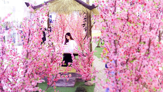 ? ? 桃花是淡雅的,同時也是妖嬈的,寓意更是美好的。商場美陳裝飾中不少節(jié)日都會運用到桃花,如春節(jié)、情人節(jié)的點綴,卻從未大面積的出現(xiàn)過。這個春節(jié)可以趁節(jié)目的大熱把握抓住與顧客互動的機會,通過打造劇情里的十里桃林來增加商場的知名度與熱度。