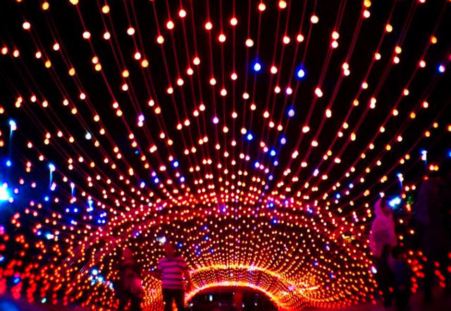 ? ? AEPioneer的燈光隧道作品由德黑蘭市美化組織贊助,創(chuàng)作目的是營造輕松娛樂的氛圍以及為當(dāng)?shù)厥忻裉峁┮粋€舒適的燈光環(huán)境。隧道總長80米,總共安裝有13000顆燈泡,燈泡的顏色會不斷改變,各種溫暖色調(diào)的燈光營造出活力和夢幻的感覺。從平靜的藍(lán)色到熱情的紅色,作品創(chuàng)造出令人意想不到的景觀和空間。