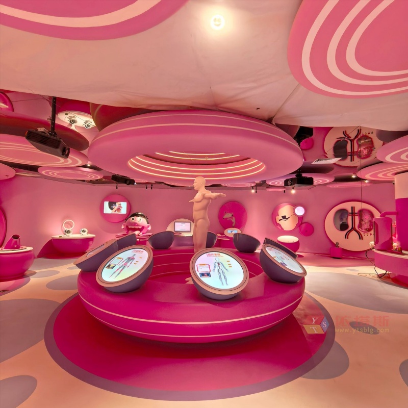 ? ? ?血管櫻花隧道:漫步于透光玻璃鋼打造的粉色血管叢林中,光線在曲面間折射出虹彩,孩子觸摸壁面時(shí)觸發(fā)壓力傳感,模擬血液流動(dòng)的柔光漣漪;