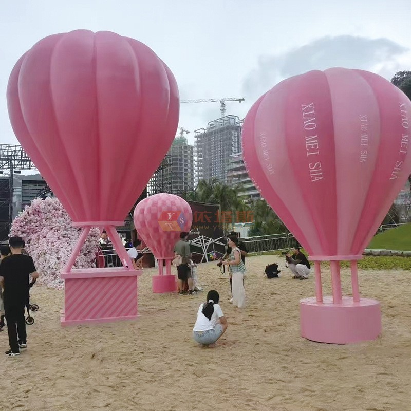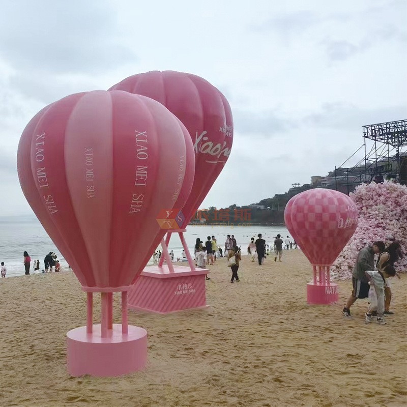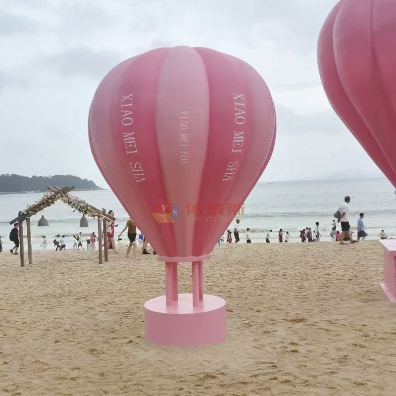 【夢幻點綴,筑夢沙灘】玻璃鋼粉色熱氣球雕塑,打造浪漫藝術空間